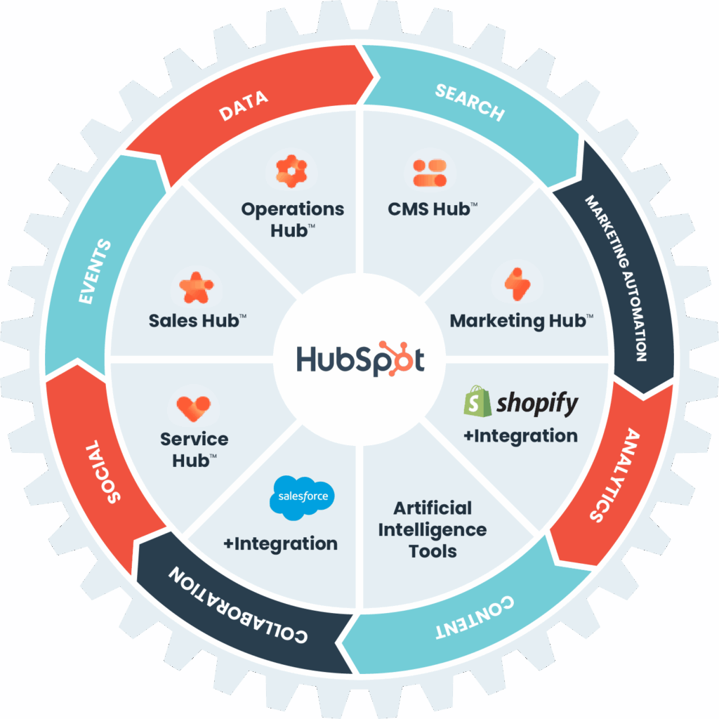 We are a full-service agency with HubSpot Elite Solutions Partner status, CRM Implementation Accreditation, Custom Integration Accreditation, and Onboarding Accreditation.